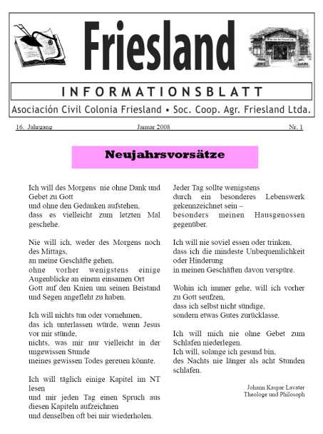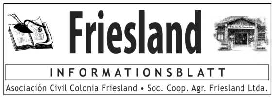 Die Zeitung informiert monatlich auf bis zu 32 Seiten über die Arbeit der Verwaltung der Kolonie Menno. |